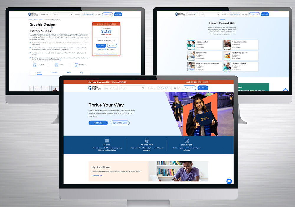 With expertise in graphic design, web design, front-end development, and content management, I have proven ability to design, build, and optimize digital experiences from concept through launch. I’m a strong collaborator across marketing, product, and engineering teams in higher education, fintech, healthcare, and B2B environments.